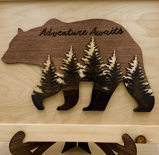 Bear in the Woods Multi-Layered 3D Wall Art (Blonde Wood)